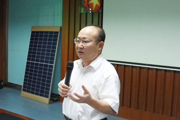 五星公司董事長(zhǎng)胡廣良首先與大家分享了國(guó)家能源局下發(fā)的《關(guān)于報(bào)送整縣(市、區(qū))屋頂分布式光伏開發(fā)試點(diǎn)方案的通知》文件精神。胡董告訴大家,國(guó)家能源局文件中已明確,黨政機(jī)關(guān)建筑屋頂總面積可安裝光伏發(fā)電比例不低于50%;學(xué)校、醫(yī)院、村委會(huì)等公共建筑屋頂總面積可安裝光伏發(fā)電比例不低于40%;工商業(yè)廠房屋頂總面積可安裝光伏發(fā)電比例不低于30%;農(nóng)村居民屋頂總面積可安裝光伏發(fā)電比例不低于20%。光伏迎來(lái)了歷史性的大發(fā)展機(jī)遇,面對(duì)新的機(jī)遇和挑戰(zhàn),我們應(yīng)牢牢抓住機(jī)遇,迎難而上,憑借自身的技術(shù)、生產(chǎn)、工程、服務(wù)優(yōu)勢(shì),投資建設(shè)出更多、更優(yōu)質(zhì)的光伏電站。