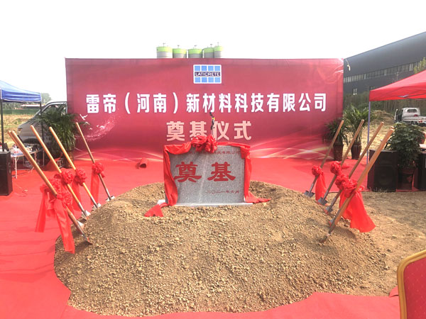 2021年6月11日,備受矚目的雷帝河南新工廠奠基儀式在河南隆重舉行。本次雷帝再次啟程成立雷帝(河南)新材料科技有限公司,總占地面積6000平方,初期構(gòu)建干粉生產(chǎn)線2條,規(guī)劃干粉年產(chǎn)能15萬噸。