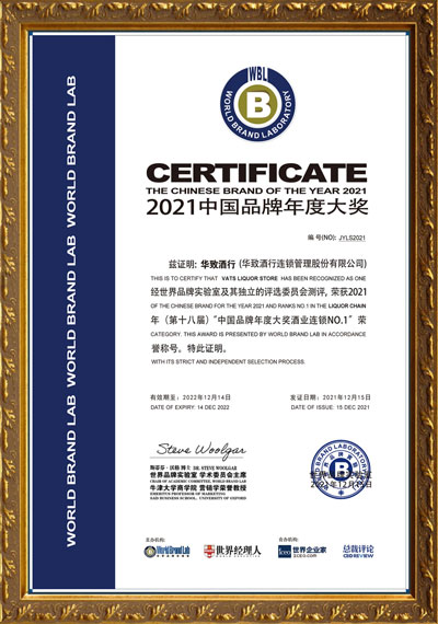 12月15日,由世界品牌實(shí)驗室(WorldBrandLab)頒發(fā)的2021年 “中國品牌年度大獎”評選在北京揭曉,華為、國航、飛鶴等35個活躍在中國經(jīng)濟(jì)舞臺的領(lǐng)軍品牌入選“2021年中國品牌年度大獎”。憑借卓越的品牌影響力和穩(wěn)定的市場表現(xiàn),華致酒行再次榮獲中國品牌年度大獎——酒業(yè)連鎖NO.1榮譽(yù)獎項。這也是華致酒行第四次榮獲該項大獎。