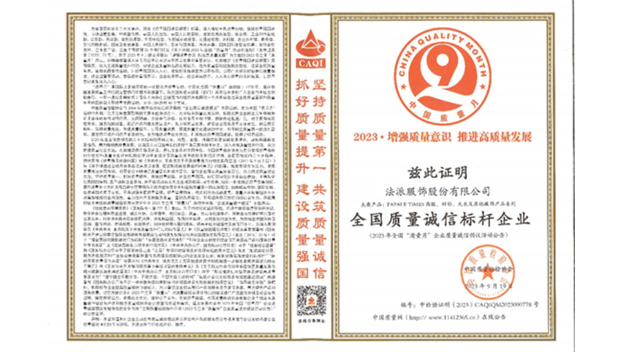 誠信經(jīng)營是企業(yè)的道德底線,保證質(zhì)量安全是企業(yè)的責(zé)任。法派決心落實質(zhì)量誠信的各項承諾,牢固樹立“誠信至上、以質(zhì)取勝”的經(jīng)營理念,以誠信鑄品牌,以質(zhì)量求發(fā)展。
