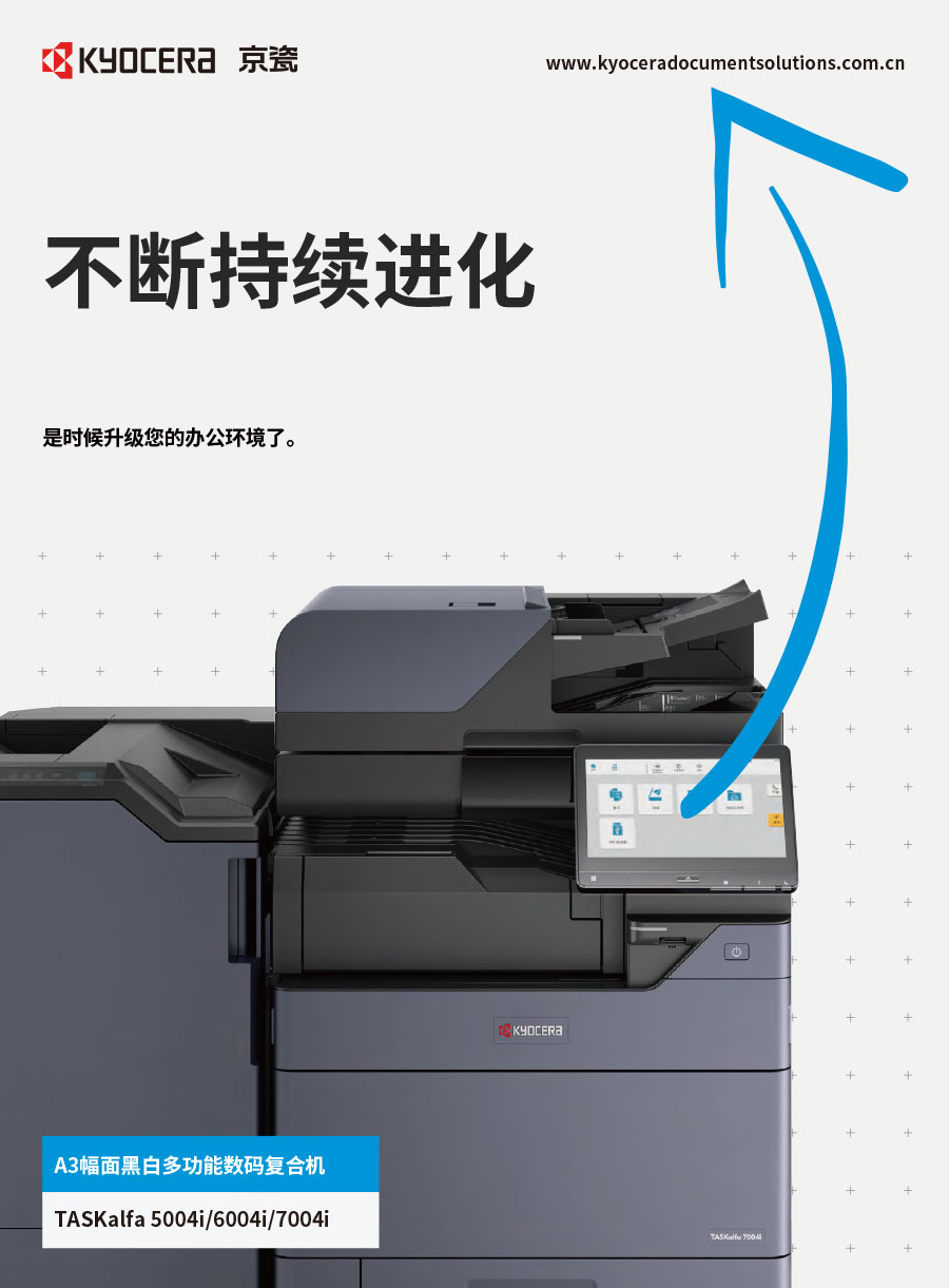 京瓷辦公信息系統(tǒng)(中國)有限公司主要負責(zé)彩色和黑白數(shù)碼復(fù)合機、彩色和黑白數(shù)碼激光打印機、生產(chǎn)型彩色噴墨印刷系統(tǒng)、辦公解決方案等系列辦公自動化設(shè)備的銷售。京瓷辦公設(shè)備將一如既往延續(xù)ECOSYS理念,始終站在時代前沿,以科技服務(wù)社會,堅持開發(fā)更能滿足時代需求、更為綠色的新銳產(chǎn)品,使用戶都能夠從中獲得更大的利益。