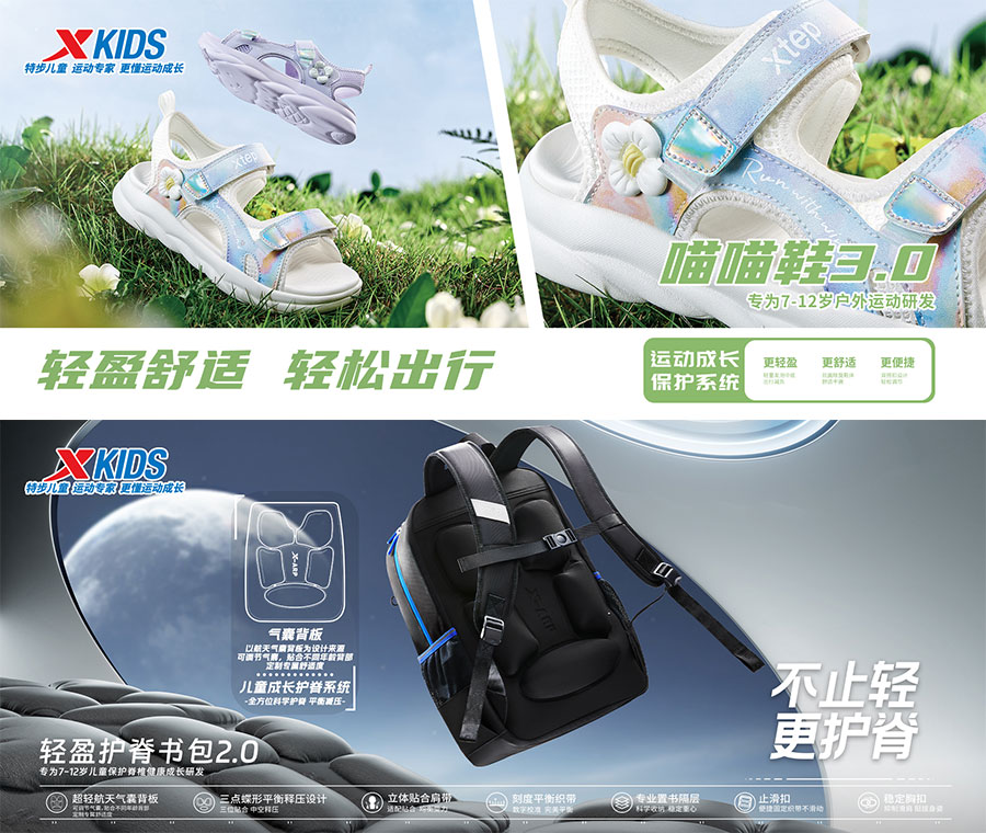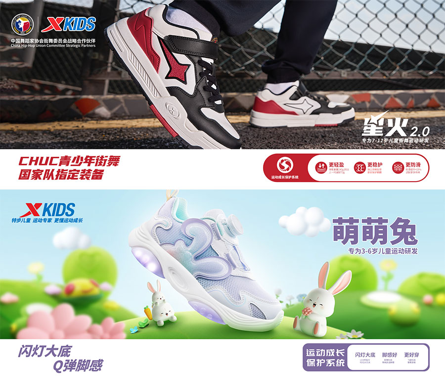 主要產(chǎn)品:特步兒童童鞋、童裝、兒童配件