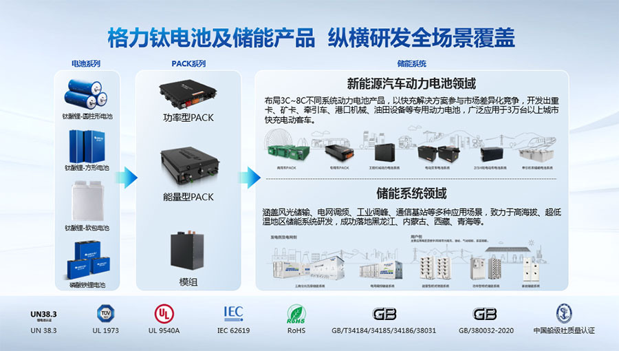 以完善的研發(fā)體系,公司加快技術(shù)創(chuàng)新與產(chǎn)業(yè)升級的步伐。公司研發(fā)的格力鈦電池安全性長期領(lǐng)跑行業(yè),憑借具有高安全、大倍率、快充放、耐寬溫、長壽命等特性,被選為“國家制造業(yè)單項(xiàng)冠軍產(chǎn)品”,廣泛應(yīng)用于新能源汽車以及工商業(yè)園區(qū)、通訊基站、電網(wǎng)調(diào)頻、軌道交通、風(fēng)光消納、船舶岸電、家庭住宅、軍事科研等儲能領(lǐng)域,具有廣闊的市場前景和應(yīng)用價值。目前,格力鈦儲能產(chǎn)品已在丹麥、瑞士、芬蘭等全球30多個國家和地區(qū)使用,新能源汽車產(chǎn)品在北京、杭州、武漢、成都、青島、哈爾濱、包頭、??诘热?40多座城市運(yùn)營,12年全球零電池事故安全運(yùn)行。