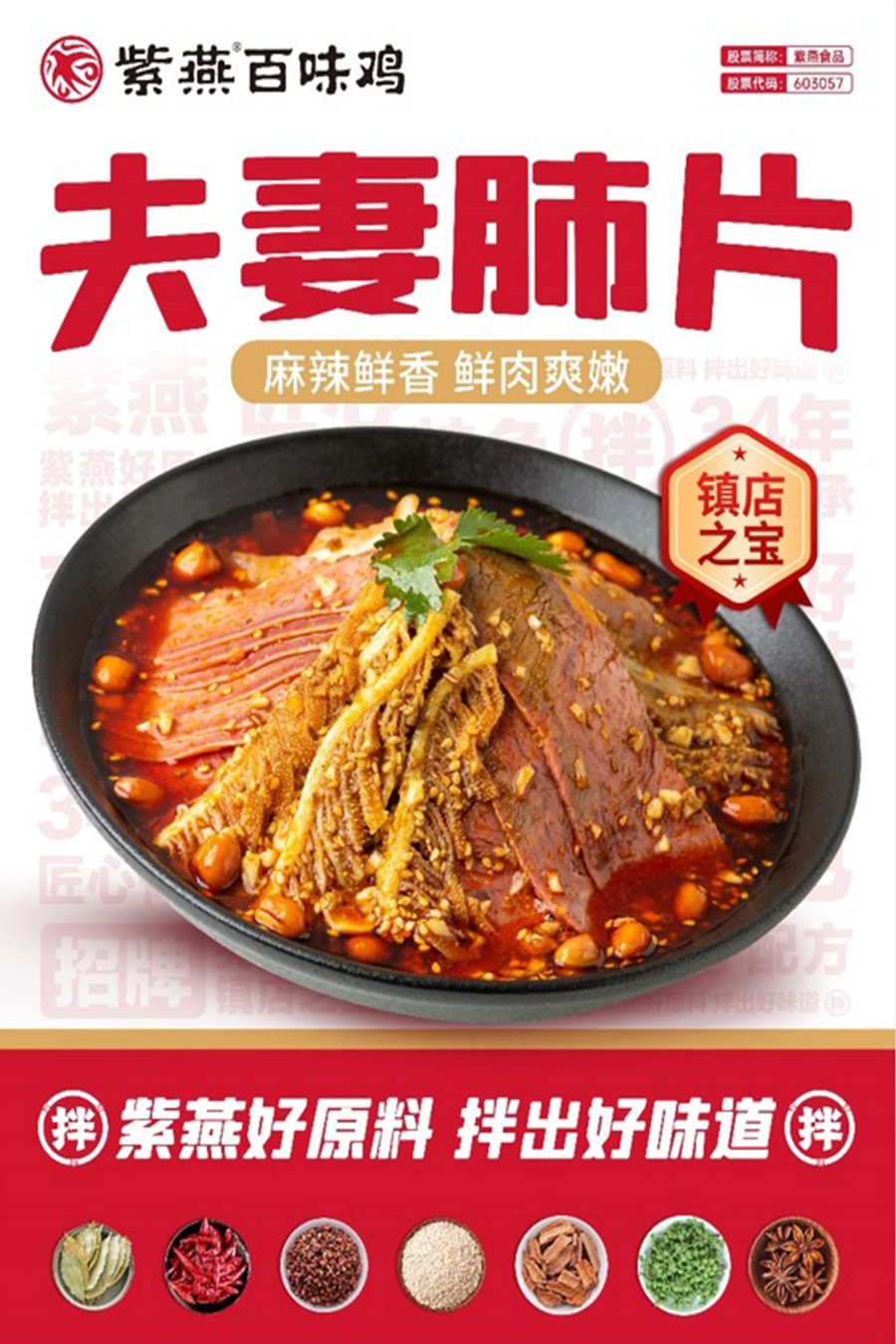 紫燕主營業(yè)務(wù)為鹵制食品的研發(fā)、生產(chǎn)和銷售,主要產(chǎn)品為夫妻肺片、百味雞、藤椒雞等以雞、鴨、牛、豬等禽畜產(chǎn)品以及蔬菜、水產(chǎn)品、豆制品為原材料的鹵制食品,應(yīng)用場景以佐餐消費(fèi)為主、休閑消費(fèi)為輔,主要品牌為“紫燕”。