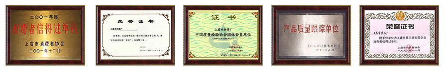 公司歷年被上虞市人民政府命名為“重合同,守信用”單位、浙江省一級(jí)信用企業(yè)、消費(fèi)者信得過單位,取得“全面質(zhì)量管理達(dá)標(biāo)”證書,是上虞市質(zhì)量技術(shù)監(jiān)督質(zhì)量跟蹤企業(yè)、中國(guó)質(zhì)量協(xié)會(huì)團(tuán)體會(huì)員單位。