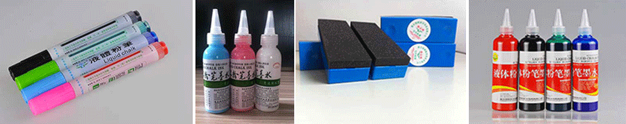 煜輝主要產(chǎn)品——液體粉筆及環(huán)??刹聊l陷x公司為中國3000萬教師和4億學(xué)生健康著想,立志于解決傳統(tǒng)粉筆粉塵污染問題,決定開發(fā)液體粉筆,還給廣大師生一個健康潔凈的學(xué)習(xí)環(huán)境。2003年—2008年,經(jīng)過努力,彩色液體粉筆終于成功問世。該產(chǎn)品共有黑色、紅色、藍色、綠色四種顏色。液體粉筆墨水灌裝在筆內(nèi),在米黃色教學(xué)板上書寫,字跡清晰,顏色多樣化能滿足教學(xué)質(zhì)量;書寫流暢,摩擦力小,減少教師板書疲勞;擦拭無塵,能讓教師輕松愉快地講解,提高教學(xué)質(zhì)量。煜輝公司生產(chǎn)的彩色液體粉筆,使用前學(xué)校只需投入很少的資金,在不改變原有教學(xué)板性質(zhì)的情況下簡單改造黑板,就可以正常使用該產(chǎn)品。這樣就降低學(xué)校的使用成本,為煜輝產(chǎn)品迅速進入市場創(chuàng)造了有利條件。
