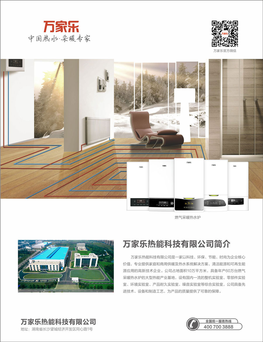 萬(wàn)家樂(lè)熱能科技有限公司是一家以科技、環(huán)保、節(jié)能、時(shí)尚為企業(yè)核心價(jià)值,專(zhuān)業(yè)提供家庭和商用供暖及熱水系統(tǒng)解決方案、清潔能源和可再生能源應(yīng)用的高新技術(shù)企業(yè)。公司占地面積10萬(wàn)平方米,具備年產(chǎn)30萬(wàn)臺(tái)燃?xì)獗趻鞝t的大型熱能產(chǎn)業(yè)基地,設(shè)有國(guó)內(nèi)一流的整機(jī)實(shí)驗(yàn)室、零部件實(shí)驗(yàn)室、環(huán)境實(shí)驗(yàn)室、產(chǎn)品耐久實(shí)驗(yàn)室、噪音實(shí)驗(yàn)室五個(gè)綜合實(shí)驗(yàn)室,引進(jìn)歐美等國(guó)的先進(jìn)技術(shù)、設(shè)備和制造工藝,為產(chǎn)品的質(zhì)量提供了可靠的保障。