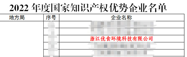 優(yōu)食科技榮獲“2022年度國(guó)家知識(shí)產(chǎn)權(quán)優(yōu)勢(shì)企業(yè)”稱號(hào)