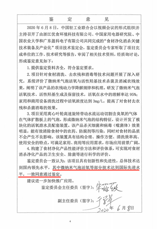 具有自主知識(shí)產(chǎn)權(quán)的“微納米氣泡活氧羥基”(UISH MOH+ ?)技術(shù)被中國(guó)輕工業(yè)聯(lián)合會(huì)鑒定為國(guó)際先進(jìn)。