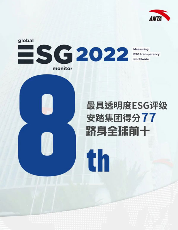 安踏集團(tuán)位列Global ESG Monitor 2022全球最具透明度ESG報(bào)告第八位及香港藍(lán)籌之冠