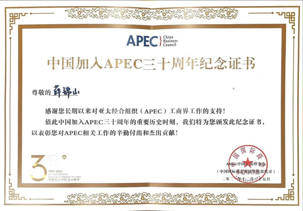 至今已得到逾60國政要貴賓青睞與認(rèn)可,擔(dān)當(dāng)著傳遞中國特色大國外交理念的茶文化使者,薛錦山于2021年獲得中國加入APEC三十周年紀(jì)念證書,于2022年被授予新時(shí)代中國經(jīng)濟(jì)創(chuàng)新人物榮譽(yù)稱號(hào)。
