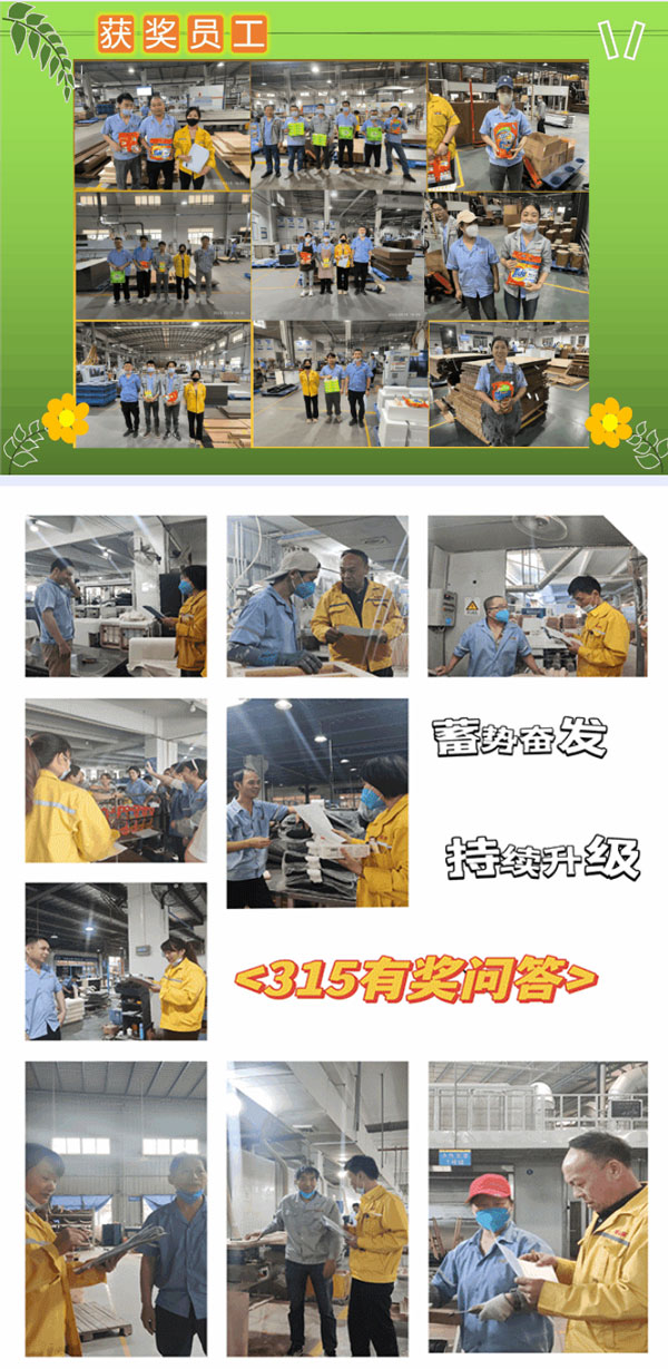 “3.15”活動圓滿落下帷幕,對于廣東華盛家具集團而言,自成立以來始終將“創(chuàng)鑄名牌,服務社會”企業(yè)使命深植于心,外化于行,堅守初心“用心創(chuàng)造品質,匠心鑄造品牌,為客戶乃至社會提供更優(yōu)質產品和體驗”堅持質在每一天,365天每天都是“3.15”,此次活動的成功舉辦標志著2023年廣東華盛家具集團宣傳系列活動全面展開,全員投身參與企業(yè)“同行業(yè)、同類型、最高檔次”品質建設,形成產品質量“零缺陷”, 人人創(chuàng)造質量,人人享受質量新局面,推動企業(yè)邁入高質量跨越發(fā)展新時代,再創(chuàng)佳績,2023年蓄勢奮發(fā),持續(xù)升級。