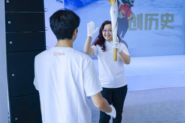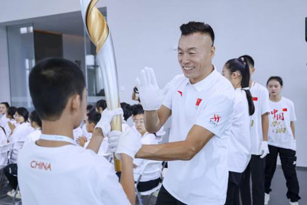 活動現(xiàn)場舉行了莊嚴隆重的奧運火炬?zhèn)鬟f儀式,將活動推向高潮。2024年巴黎奧運會舉辦之際,安踏希望班的同學們也將高中畢業(yè)步入大學,迎來人生新階段?;鹁嬖谕瑢W和嘉賓的手中傳遞,點燃了同學們對未來的憧憬,體育的力量燃起了沖刺的斗志。