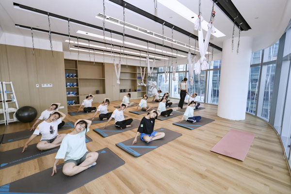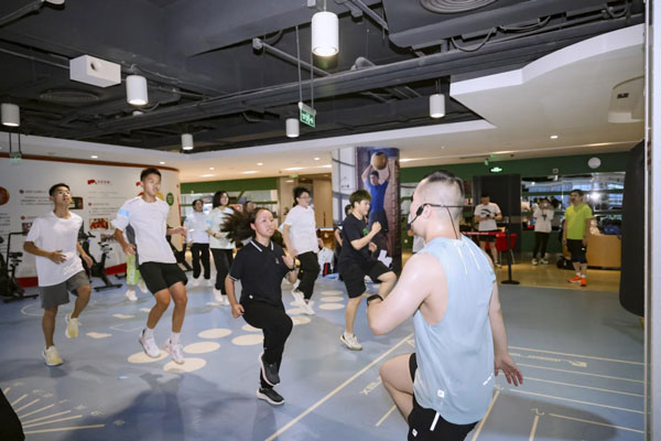 安踏集團董事局主席丁世忠與安踏希望班的同學們在公司海景健身房一同運動