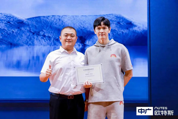 在現(xiàn)場嘉賓的共同見證下,浙江中廣電器集團(tuán)股份有限公司品牌總監(jiān)盧尚有為鮑春來現(xiàn)場頒發(fā)了“品牌超級體驗官”授牌,正式宣告熱泵領(lǐng)軍者中廣歐特斯與羽毛球世界冠軍鮑春來強(qiáng)強(qiáng)聯(lián)手,開啟一段全新的熱愛之旅。同時,為恭賀鮑春來喬遷新禧,中廣歐特斯還現(xiàn)場贈送了一臺熱泵衣物護(hù)理機(jī)新品,為其帶來全新的衣物護(hù)理體驗。