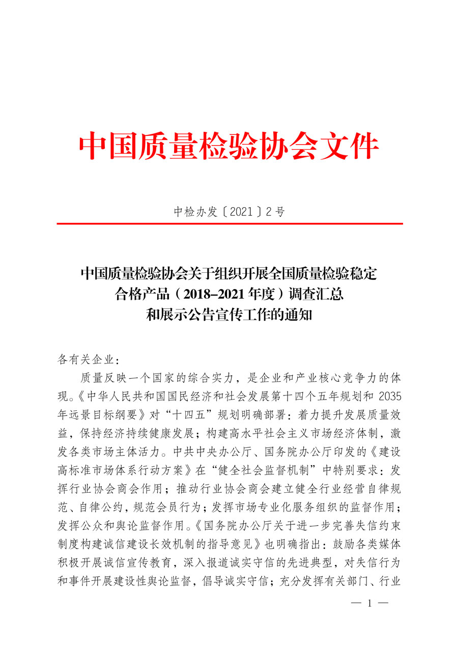 中國質(zhì)量檢驗協(xié)會關(guān)于組織開展全國質(zhì)量檢驗穩(wěn)定