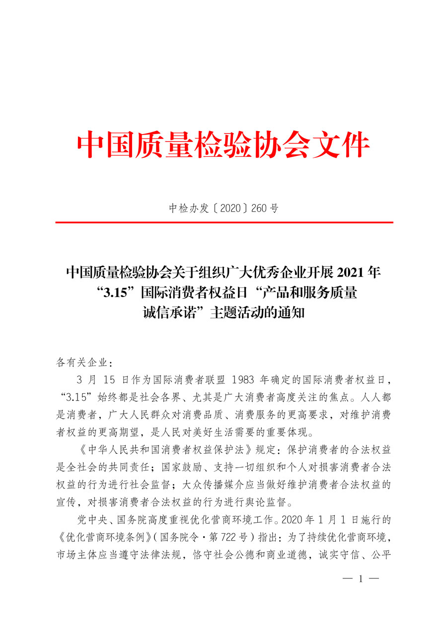 中國質(zhì)量檢驗(yàn)協(xié)會關(guān)于組織廣大優(yōu)秀企業(yè)開展2021年