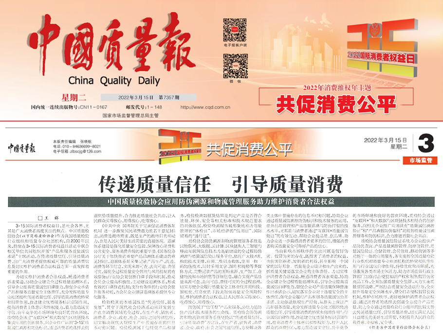 ——中國質(zhì)量檢驗協(xié)會應(yīng)用防偽溯源和物流管理服務(wù)助力維護(hù)消費者合法權(quán)益